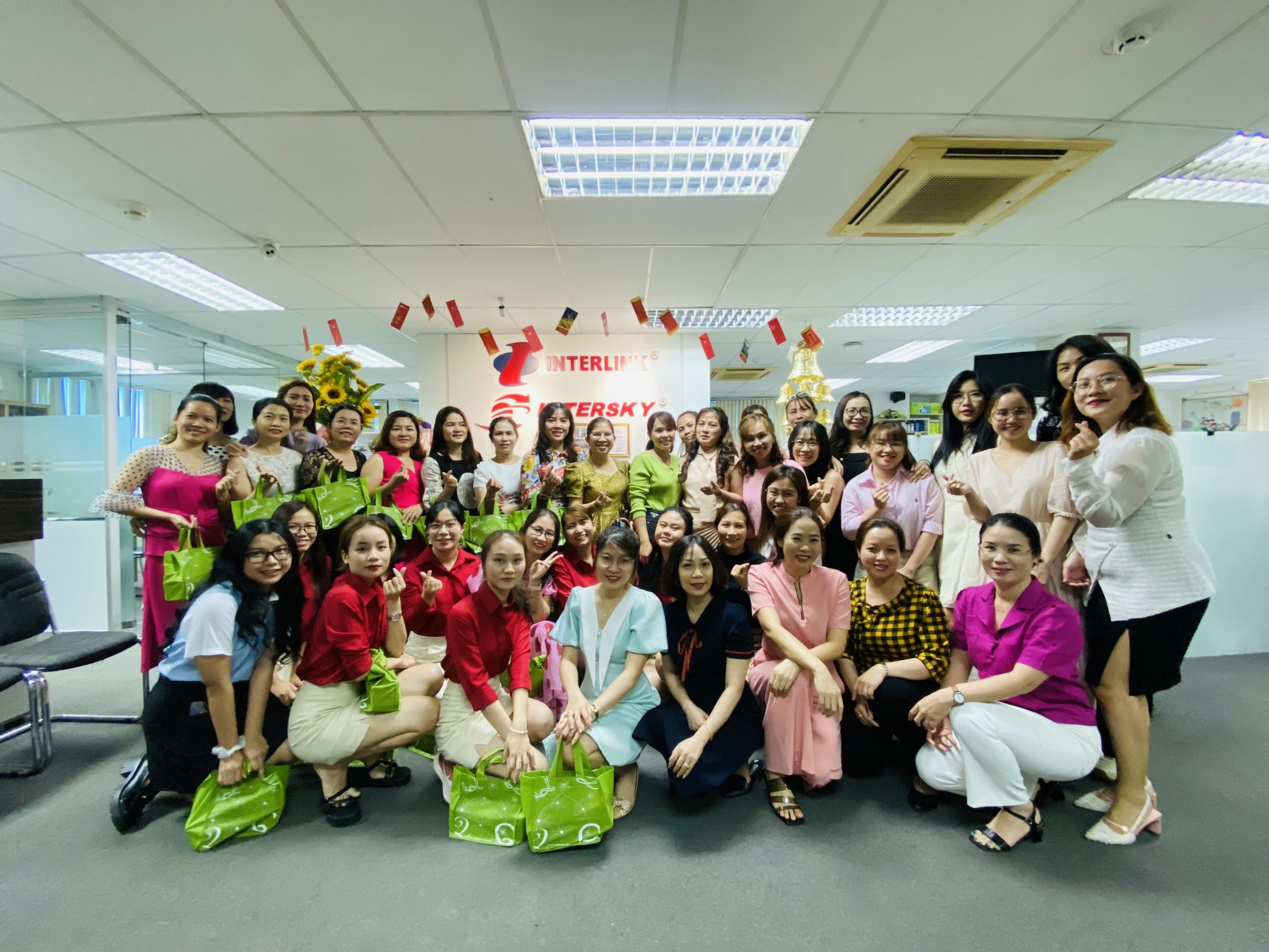 Không khí 8/3 tại Interlink đã nhộn nhịp từ hôm trước khi mọi người cùng nhau chuẩn bị những món quà và set up không gian để tặng quà cho các chị em phụ nữ. Bên cạnh đó, BGĐ cũng tạo cơ hội để các chị em có dịp ăn uống và giao lưu tại một hàng buffet Thái Lan ở quận 3.