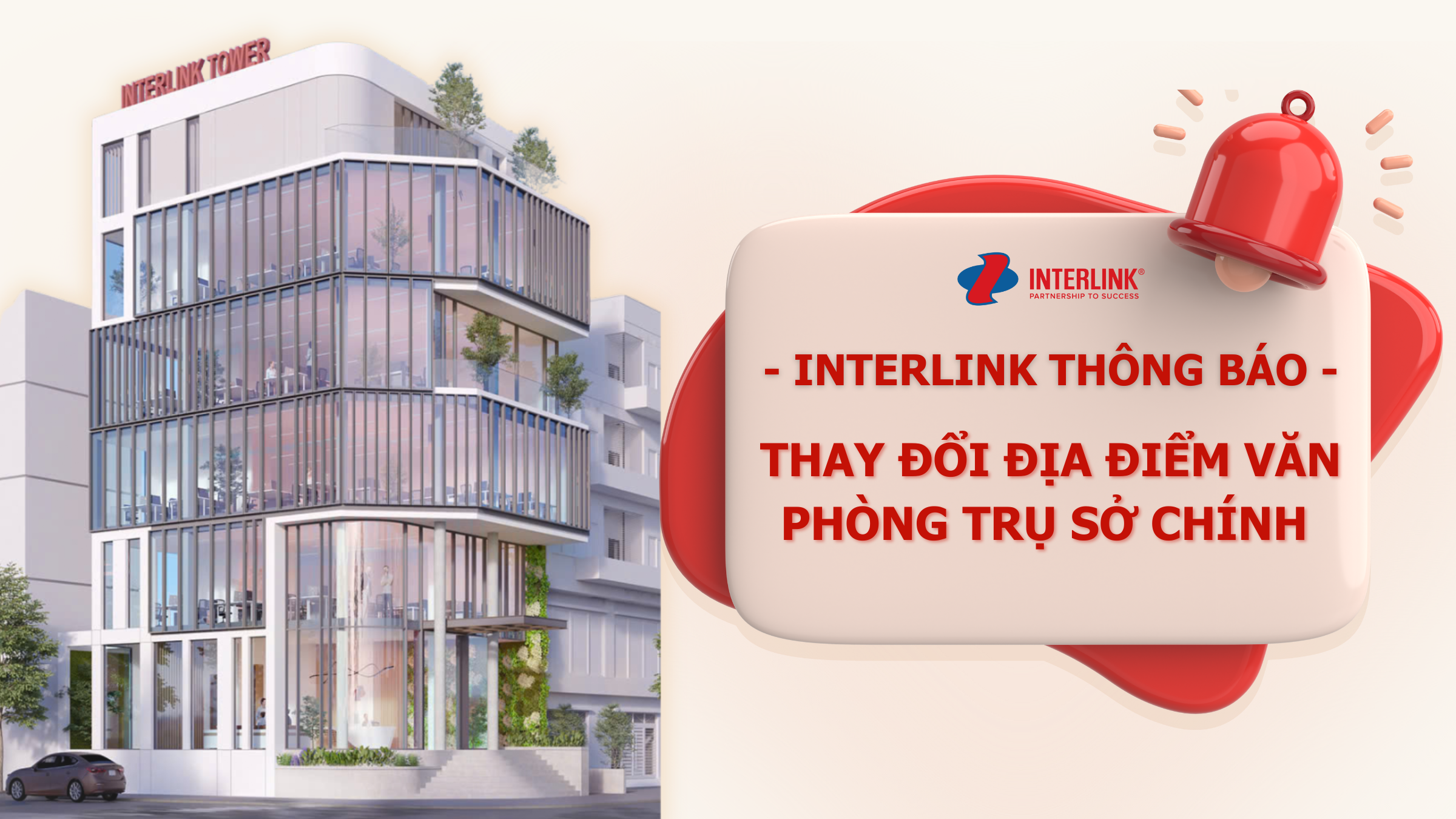 Lời đầu tiên, Interlink xin chân thành cảm ơn sự tin tưởng và đồng hành của Quý Khách hàng và Quý Đối tác trong suốt thời gian qua. Để đáp ứng nhu cầu phát triển và nâng cao chất lượng dịch vụ, Interlink xin trân trọng thông báo về việc thay đổi địa điểm văn phòng như sau:
