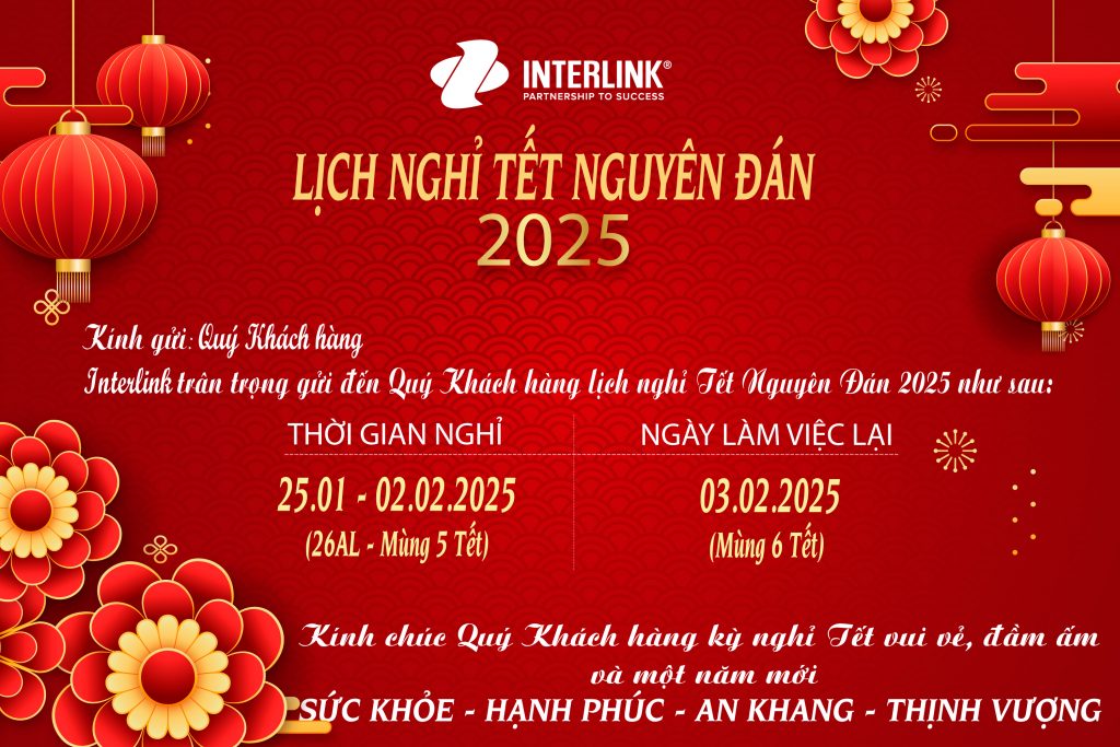 Nhân dịp Tết Nguyên Đán 2025, Công ty Cổ phần Interlink trân trọng thông báo lịch nghỉ lễ đến Quý Khách hàng và Đối tác như sau: